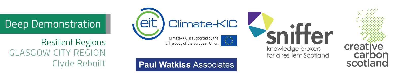 Clyde Rebuilt included a wealth of expertise through its partners and funders. It was led by Climate Ready Clyde, with technical, cultural, economic and governance expertise from Verture. Clyde Rebuilt had cultural expertise and understanding of creative arts in sustainability from charity Creative Carbon Scotland, and specialist climate change and economic expertise from research consultancy Paul Watkiss Associates. Clyde Rebuilt was part of EIT Climate-KIC “Deep Demonstration Resilient Regions” programme along with Andalusia in Spain, Nouvelle Aquitaine in France and the Dolomites area in Italy, three European regions that are also at risk from the impact of climate change.